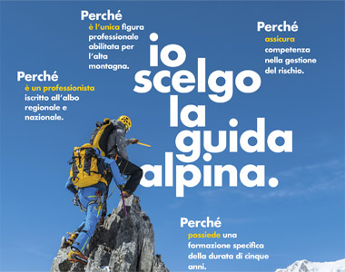 La Guida Alpina - Maestro di Alpinismo è l'unica figura abilitata all'accompagnamento della clientela e all'insegnamento di attività che rendono necessario l'utilizzo di attrezzatura alpinistica: