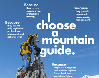 La Guida Alpina è un professionista riconosciuto a livello internazionale dalla federazione IVBV/UIAGM/IFMGA e regolarmente iscritto a un albo professionale.